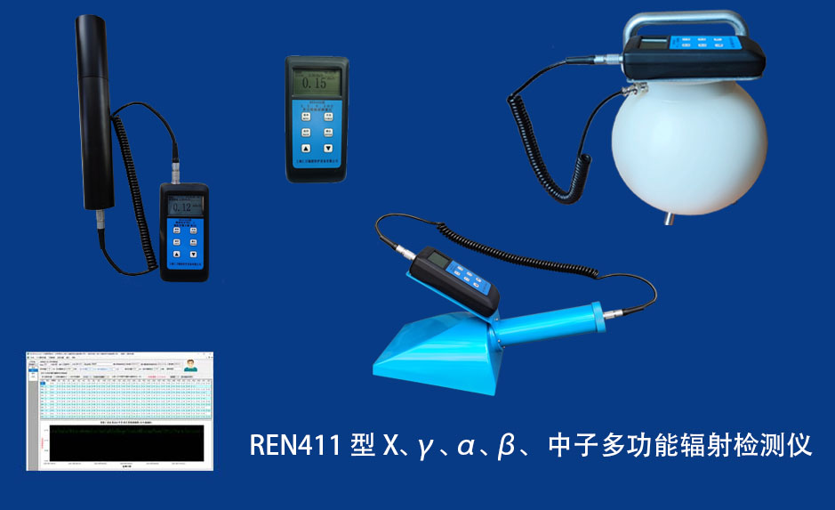 REN400 X、γ、α、β、中子多功能輻射檢測儀 REN400型多功能輻射檢測儀是以內置高靈敏度蓋格計數管為探測器,外接不同類型的探頭來實現對低劑量χ、γ射線,高劑量χ、γ射線,α、β射線和中子射線的檢測。作為多功能輻射巡測儀,能顯示工作場所的輻射值,自動連續測量和記錄280萬條輻射劑量率數據,更換電池時,日歷、時間及檢測數據能永久保存。工作人員可以任意設定報警值,超閾值后自動發出聲音、震動和光報警。多功能輻射檢測儀適用于核設施、核技術應用單位、廢舊鋼鐵、防化部隊、 加速器、同位素應用、工業X、γ無損探傷、放射醫療、鈷源治療、γ輻照、放射性實驗室的輻射場調查及事故應